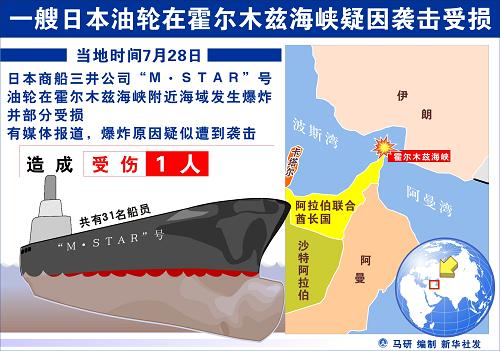 日本國(guó)土交通省28日發(fā)布通報(bào),日本商船三井公司所屬M(fèi)·STAR號(hào)大型油輪當(dāng)?shù)貢r(shí)間28日零時(shí)30分左右在行經(jīng)霍爾木茲海峽時(shí)發(fā)生爆炸,事發(fā)海域?qū)儆诎⒙I(lǐng)海。爆炸導(dǎo)致一名船員受傷,船體后部受損,但沒有造成原油泄漏。有船員稱,油輪疑似遭到襲擊。爆炸事件發(fā)生后,M·STAR號(hào)轉(zhuǎn)而駛往阿聯(lián)酋富查伊拉港。