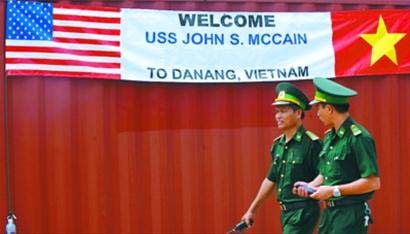 繼美軍核動(dòng)力航母“喬治·華盛頓”號(hào)8日抵達(dá)越南中部峴港附近的南海海域后,美軍“約翰·麥凱恩”號(hào)驅(qū)逐艦又于10日在越南峴港靠岸,準(zhǔn)備進(jìn)行軍事交流。此時(shí)正值南海問題引發(fā)外交紛爭(zhēng)之際,美越間的頻繁互動(dòng)成為各方關(guān)注的焦點(diǎn)。