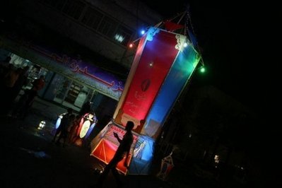 這座高10米寬3.5米的燈狀物體由木頭和布料制成,制造者稱他建造這座巨型燈花費了400美元,“我將向吉尼斯世界紀錄提出申請,以便向世界傳達打破加沙封鎖的信息!