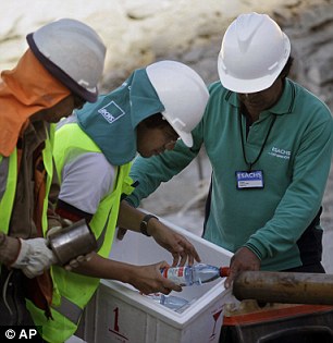 根據(jù)智利官方制定的救援方案,救援人員將在發(fā)生礦難的礦井上方打通一口直徑大約66厘米的逃生井,直通地下700米處,也就是受困礦工所在地方。然后,通過一個裝有滑輪的混凝土平臺將被困礦工逐一救出。然而由于礦井巖層堅固,且井內(nèi)境況復雜,相關(guān)人員估計打通這條逃生通道需要數(shù)個月的時間。