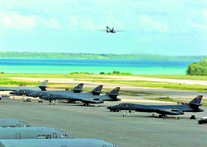 目前,迪戈加西亞島上有深水航道兩條、碼頭一座,可停泊大型航空母艦等戰(zhàn)艦。島上的機(jī)場有一條長3600多米的跑道,可起降B-52、B-1、B-2等遠(yuǎn)程重型轟炸機(jī);停機(jī)坪面積達(dá)37萬平方米,可容納100多架戰(zhàn)機(jī)。