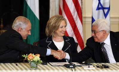 在美國國務(wù)卿希拉里的主持下,巴勒斯坦領(lǐng)導(dǎo)人阿巴斯和以色列總理內(nèi)塔尼亞胡自2008年年底后第一次坐在同一張談判桌前,著手就以色列定居點(diǎn)、耶路撒冷歸屬等最終地位問題展開直接談判,以結(jié)束雙方數(shù)十年的沖突并實(shí)現(xiàn)“兩國方案”。