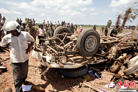 中新網(wǎng)9月17日電 據(jù)美國(guó)媒體報(bào)道,17日,斯里蘭卡軍方發(fā)言人說(shuō),該國(guó)東部一處警察局附近的彈藥庫(kù)發(fā)生意外爆炸,爆炸導(dǎo)致至少60人死亡,其中包括兩名中國(guó)人。中國(guó)駐斯里蘭卡使館已經(jīng)確認(rèn)有兩名中國(guó)人在爆炸中死亡。