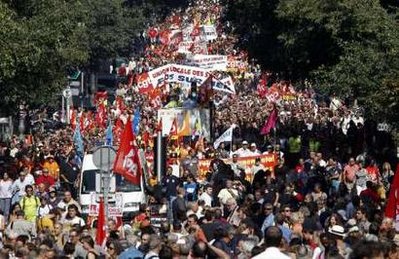 中新網(wǎng)9月24日電 法國(guó)工會(huì)23日發(fā)動(dòng)一個(gè)月內(nèi)第二次全國(guó)大罷工,290萬(wàn)人走上街頭,抗議政府打算推行的退休制度改革。