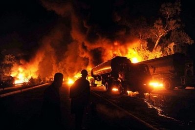 中新網(wǎng)10月7日電 綜合報道,塔利班分子6日在巴基斯坦西部奎達附近出擊,攻擊北約部隊的一支運輸車隊,燒毀20多輛運油車,有一個司機不幸身亡。之后,在西北部城市瑙謝拉,又有至少36輛油罐車遭武裝分子襲擊起火。連昨天的兩次攻擊在內(nèi),過去的一星期內(nèi),這類事件已經(jīng)發(fā)生5次。