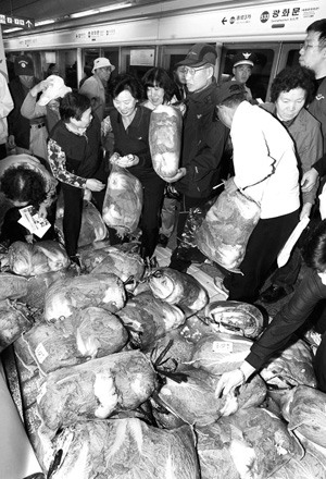 韓國地鐵公司嗅到了白菜中蘊(yùn)藏的巨大商機(jī),近日在地鐵站里擺了個(gè)市場,賣起了白菜。