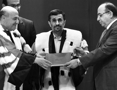 14日上午,內(nèi)賈德在位于貝魯特的黎巴嫩大學受到了師生們的熱烈歡迎,并被授予政治學榮譽博士學位。黎教育部長和黎巴嫩大學校長為他披上博士服并頒發(fā)了學位證書。獲得博士學位的內(nèi)賈德激動不已,當場向學生們發(fā)表講話。他說:“我們相信真正的科學會為人類、和平、愛和友誼服務。”