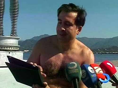 俄媒體報(bào)道認(rèn)為,薩卡什維利“赤膊”接受記者采訪“明顯是效仿普京進(jìn)行的炒作”。此前,普京還是俄總統(tǒng)時(shí)在西伯利亞赤膊打魚的照片曾引起關(guān)注,隨后奧巴馬同樣的“赤膊照”也震驚了世界。