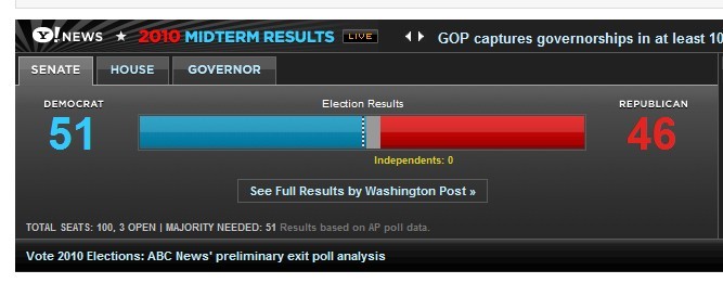 據(jù)報道,《華盛頓郵報》最新出口民調(diào)結果顯示,在美國2010年中期選舉當中,總統(tǒng)奧巴馬所在的民主黨在參議院已開出的97個席位中獲得了51個席位,超過參議院100個議席中的半數(shù),獲得了參議院掌控權。
