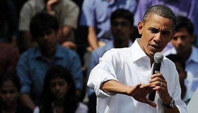 奧巴馬在訪問孟買的第2天,與孟買圣澤維爾學院(St. Xavier College)學生對話。他向?qū)W生們解釋,美國正積極與巴基斯坦合作,打擊伊斯蘭激進份子,但進展速度未如美國預期。