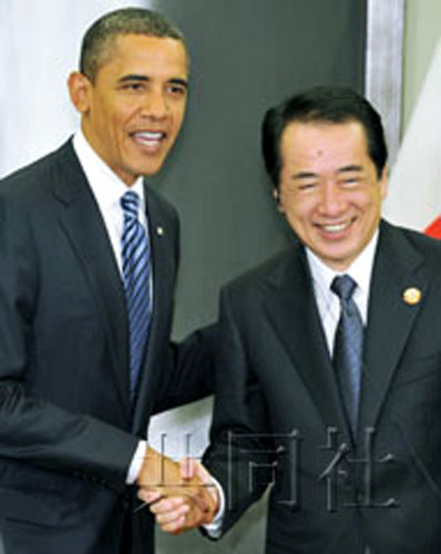 中新網(wǎng)11月13日電 據(jù)日本共同社13日報道,日本首相菅直人13日上午在橫濱與來日參加亞太經(jīng)合組織(APEC)峰會的美國總統(tǒng)奧巴馬舉行會談。兩國首腦就進一步“深化”同盟關(guān)系達成一致。會談結(jié)束后,奧巴馬向記者表示,美國將“毫不動搖”地堅持保衛(wèi)日本這一決心。