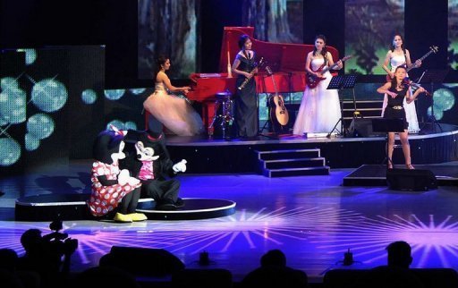 據(jù)報(bào)道,牡丹峰樂(lè)團(tuán)由金正恩親自組建,他觀看的這次演出包括美國(guó)迪士尼系列的歌舞劇。表演者打扮成米老鼠,小熊維尼等迪士尼知名卡通形象在舞臺(tái)上進(jìn)行表演,同時(shí)巨大背景屏幕上播放著“白雪公主”、“美女與野獸”等迪士尼電影片段。