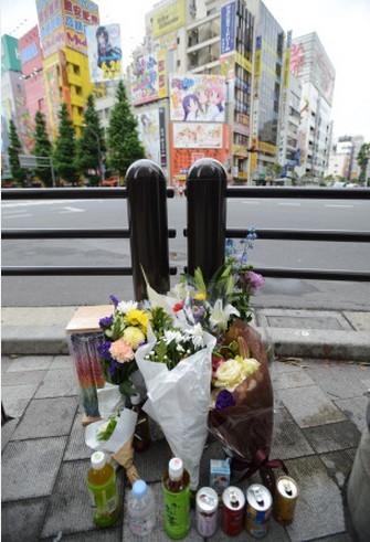 據(jù)日本《每日新聞》6月8日?qǐng)?bào)道,2008年,東京秋葉原步行街發(fā)生一起當(dāng)街砍人事件,共造成7人死亡,10人重傷。8日,事件迎來(lái)了發(fā)生五周年紀(jì)念日。曾是派遣公司職員的犯罪嫌疑人加藤智大以殺人罪被起訴,一審判決和二審判決均為死刑。在事件現(xiàn)場(chǎng)的十字路口的一個(gè)角落,從8日一早就開始有人供奉鮮花,并雙手合十祈禱。