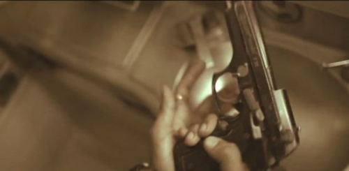 衛(wèi)生間里有人扣動手槍的扳機。(圖片來源:英國《每日郵報》網(wǎng)站)