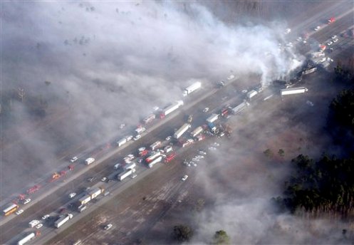 據(jù)悉,目前還不清楚這條通往佛州的東西主要干道何時(shí)重新開放。佛州高速公路的巡警拉里說,大約有38人受傷,其中5人傷勢嚴(yán)重。由于當(dāng)?shù)厣只馂?zāi)引起的濃煙和大霧相混合,導(dǎo)致事故發(fā)生路段的能見度極低。有幸存者說,在進(jìn)入事故發(fā)生路段的時(shí)候,甚至“看不見眼前自己的手”。