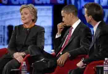 中新網1月22日電 綜合報道,美國民主黨總統(tǒng)候選人奧巴馬和希拉里-克林頓近日不斷在公開場合互相指責。1月22日,兩人又在南卡羅來納州就伊拉克及政府開支問題展開激烈爭論,而約翰-愛德華茲則指責他們的辯論是“爭吵”。