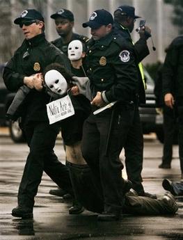 據(jù)香港《文匯報(bào)》報(bào)道,在美國(guó)國(guó)稅局大樓,100多名反戰(zhàn)人士企圖封鎖入口,其中數(shù)人甚至越過圍攔在門前靜坐。示威者稱,針對(duì)國(guó)稅局是因?yàn)樗鼡芸钯Y助伊戰(zhàn),警方到場(chǎng)后拘捕了32人,并迅速清場(chǎng)。