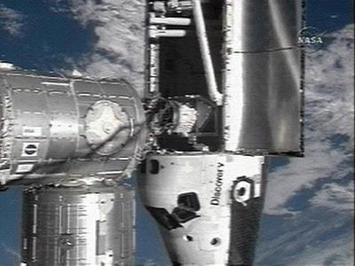 經(jīng)過(guò)近兩天的太空飛行,美國(guó)“發(fā)現(xiàn)”號(hào)航天飛機(jī)2日下午順利飛抵目的地——國(guó)際空間站,并對(duì)接在空間站上。