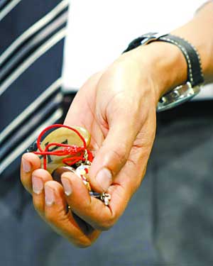 會上他向與會女性展示其隨身攜帶的刻有十字架的護身符。