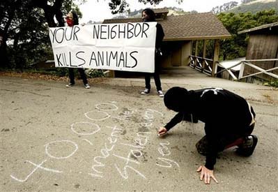 據(jù)悉,動(dòng)物保護(hù)主義者目前越來越流行借用“反墮胎”游行慣用的戰(zhàn)略:到家門口去抗議。