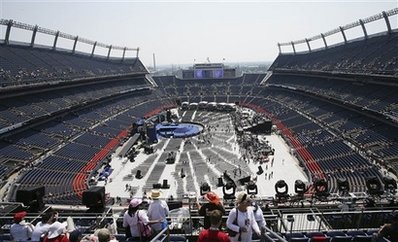 奧巴馬發(fā)表演說前,女演員Jennifer Hudson將演唱國歌,還有繞舌歌手will.i.am、歌手Sheryl Crow等演唱,星光熠熠。當(dāng)奧巴馬出場時,臺上將大灑彩紙,并圍繞球場四周放煙花。