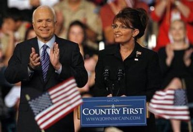 麥凱恩宣布選擇阿拉斯加州女州長佩林為競選伙伴。