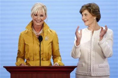 第一夫人勞拉·布什和美國共和黨總統(tǒng)候選人麥凱恩的妻子辛迪成為共和黨全國代表大會首日的主角。