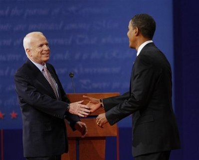 據(jù)路透社報道,9月27日早上,美國民主黨總統(tǒng)候選人奧巴馬與共和黨總統(tǒng)候選人麥凱恩的首場辯論在密西西比大學(xué)展開,兩人以華爾街金融危機以及布什政府提出的救市計劃展開唇槍舌劍。