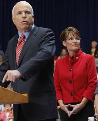 美國共和黨副總統(tǒng)候選人佩林(右)被指可能拖累麥凱恩(左)的選情