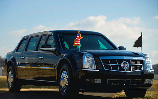 根據(jù)特勤局所公布的圖片,這是一輛通用汽車制造的凱迪拉克車,它與以往的總統(tǒng)座車相比,增大了車窗面積,可讓總統(tǒng)擁有更充足的視野。當然防彈功能是絕對的,此外,這車還具有完全隔絕外部氣體的功能,能有效防御化學武器襲擊。而車上也安裝了訊息加密的通訊設備。