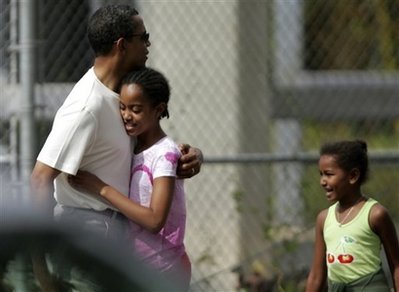 中新網1月16日電 據《星島日報》報道,即將于下周二(20日)宣誓就職的美國候任總統(tǒng)奧巴馬最近在百忙中,寫了一封感情洋溢的公開信給他的女兒──十歲的瑪麗亞(Malia)和七歲的薩莎(Sasha),他在信中告訴她們?yōu)槭裁礇Q定把“我們一家?guī)нM這次大冒險”,并表達出對女兒的殷切期望,字里行間令人感覺到父愛滿瀉。