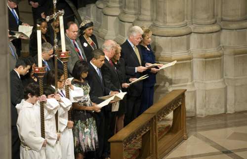 中新網(wǎng)1月22日電 新任美國(guó)總統(tǒng)奧巴馬在白宮的第一天以在華盛頓國(guó)家大教堂參加全國(guó)祈禱活動(dòng)揭開序幕,之后和妻子米歇爾歡迎“數(shù)以百計(jì)的特別嘉賓”蒞臨白宮參觀。禮節(jié)活動(dòng)完成后,便進(jìn)入了繁忙的政務(wù)。