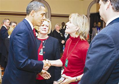丈夫死后,以各種社會活動為形式,?颂貫榉纯直疾ǘ嗄。幾天前,她剛作為“9·11”罹難者家屬代表,與美國總統(tǒng)貝拉克·奧巴馬會談。