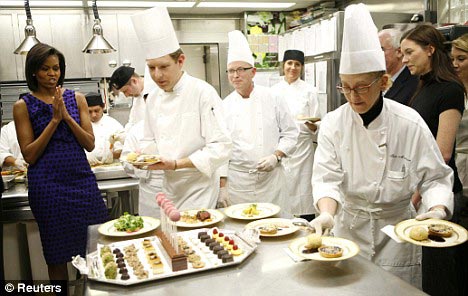 據(jù)悉晚宴開(kāi)始前,“第一夫人”米歇爾為了表示對(duì)來(lái)賓的尊重,親自前往廚房查看晚宴的籌備情況。