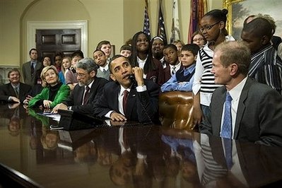 奧巴馬和太空站的航天員打招呼,他首先恭賀“發(fā)現(xiàn)號”的航天員,順利完成這次的太空任務,又指對航天員的工作成就感到驕傲,并且特別向太空站的俄羅斯及日本航天員問好。他又希望各國無論在太空或地球上,也可以互相合作。