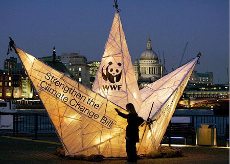 據(jù)悉,WWF在英國的分支機(jī)構(gòu)會將巨型紙船以及紙飛機(jī)的模型抬到英國議會大廈,希望能夠喚起議員們的關(guān)注。有關(guān)氣候變化問題的議案將于下周起在英國議會開始審議。