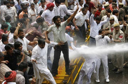 暴亂中,數(shù)千示威者封鎖了通往首都新德里的道路,威脅切斷牛奶、蔬菜供應。印度軍隊和警察在圍剿過程中向示威者開火,造成40余人死亡。然而,瞿族人前仆后繼、不惜以生命來抗爭的,不是抗議自己種姓低而遭受的歧視,反而是抗議自己的種姓等級不夠低。