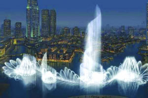 繼興建818米高的“迪拜塔”之后,阿聯(lián)酋地產巨頭艾瑪爾地產公司近日宣布,將在這座世界第一高樓附近打造一座世界最大噴泉。該噴泉高150米,長275米,相當于兩個足球場長,可以變幻1000種造型,耗資高達2.18億美元,將于2009年投入使用。一旦竣工,它將成為迪拜市又一地標性景觀,預計每年將吸引1000萬名國際游客。目前,艾瑪爾地產公司懸賞27225美元,為這座噴泉征集“靚名”。