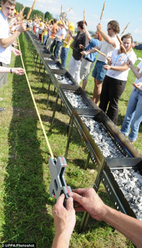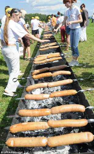 日前,志愿者們?cè)诙砹_斯首都莫斯科集體烤肉,創(chuàng)造了世界上最長(zhǎng)的燒烤攤的紀(jì)錄。