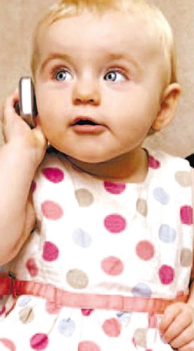 學(xué)會(huì)接聽手機(jī)的11個(gè)月大女嬰阿米莉亞。