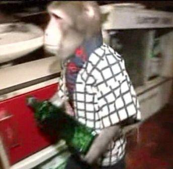 餐館老板大塚薫現(xiàn)年63歲,他最初是將這兩只猴子當作寵物來養(yǎng),后來他注意到年齡較大的雅特總是喜歡模仿他的動作,于是他開始訓練猴子在餐館工作。