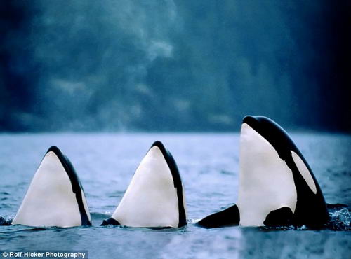 ?私忉尫Q:“居民型殺人鯨經(jīng)常以6至10頭的數(shù)量集體活動,它們夏天經(jīng)常造訪一些特別海灘以捕食鮭魚。過境型殺人鯨以個體或者小群體活動,它們通常是在捕食時才會集中活動。它們的活動范圍比居民型殺人鯨要遠,人們可以在加州至阿拉斯加州的海域發(fā)現(xiàn)它們,它們以海豹、企鵝、其它鯨類、其它海洋哺乳動物為食。第三類是所謂的近岸殺人鯨,它們很少靠近陸地。不過,當(dāng)你看到它們時,那個景象很壯觀,你可看到多達80頭的一個殺人鯨群體在吃海洋哺乳動物、魚、甚至鯊魚!(黃歡)