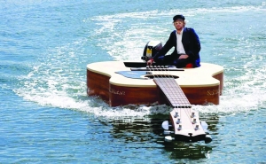 據(jù)報道,喬什的這艘“吉他船”名叫“馬頓號”,馬頓公司是澳大利亞的吉他制造廠商,而這艘“吉他船”正是由該公司設(shè)計定做的,它上面裝有舷外馬達(dá),可以在水中自由地航行。