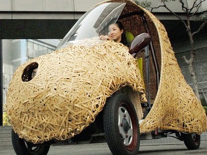 據(jù)悉,該車可乘1人,愛稱“Bamgoo”源于竹子的英文“bamboo”。它是由 45根竹子加工成900張長2米、厚1厘米的薄板后,再由竹器藝人花費1個月時間編制出了車體。