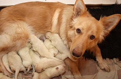 中新網(wǎng)2月4日電 據(jù)英國(guó)媒體報(bào)道,英國(guó)拉納克郡的消防員安德魯•路易斯日前在幫他三歲的德國(guó)牧羊犬萊拉接生產(chǎn)下7只狗崽后,兩小時(shí)后回家又驚奇地發(fā)現(xiàn),萊拉肚子里還有6只狗崽。