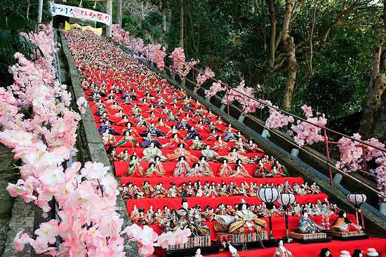 每年的3月3日是日本的傳統(tǒng)節(jié)日女兒節(jié),父母通常會(huì)把人偶裝飾在家門口,祈求女兒健康成長(zhǎng)。勝浦居民從2001年開(kāi)始,每年2月下旬起舉行盛大的女兒節(jié)人偶展示活動(dòng),女兒節(jié)已成為當(dāng)?shù)芈糜萎a(chǎn)業(yè)的支柱項(xiàng)目。今年有約3萬(wàn)個(gè)人偶出現(xiàn)在勝浦的大街小巷。(新華社記者 任正來(lái) 攝)