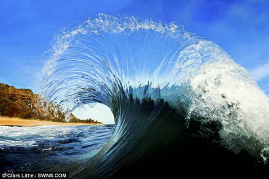 來自夏威夷歐胡島的克拉克稱,他經常冒著生命危險去抓拍“完美海浪”。他說:“我熱愛海洋,我把全部時間和精力獻給海浪,尤其是像在瓦米阿灣海灘這樣的地方。我九十年代開始在那里從事拍攝活動,現(xiàn)在,我想盡可能多地拍攝那樣的美景。我經常在黎明之前就下海,以在日出之時拍到巨浪內部美感和力量的照片。我喜歡那些巨浪的力量和美感。由于這些經歷,我能夠在自己不受到海浪沖擊的情況下拍到這些令人驚嘆的時刻,當然,我有時也會遭到海浪的撞擊!(蕭熙)
