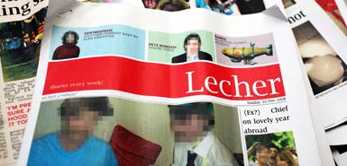 這份特別版起了另一個(gè)名字叫《Lecher》,只印刷了50份,上個(gè)學(xué)期末在一個(gè)餐飲聚會(huì)上只分派給校報(bào)的編采人員。