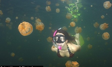據(jù)英國媒體報道,來自美國波士頓的的計算機(jī)科學(xué)家弗拉德日前在世界上絕無僅有的無毒水母湖拍攝了自己女兒和水母嬉戲的圖片。他形容在帕勞水母湖里游泳如同置身于果凍中,“我們越往湖中游,就有越多的水母將我們包圍,看著云集的水母,真是令人愉快。”