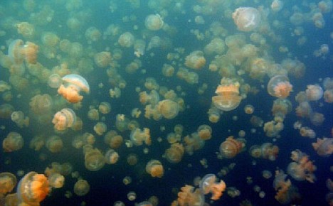 據(jù)悉,帕勞水母湖曾是海的一部分,由于地殼運動,周圍的海床升高,逐漸將它與外海隔絕,形成了一個看似普通的內(nèi)陸咸水湖。其不普通在于,湖中大多數(shù)海洋生物都隨著養(yǎng)分的消耗而消亡,只剩下了一種低等的、靠少量微生物就可以生存的海洋生物——水母。由于天敵們的消失,這些水母“遺失”了祖先用以防衛(wèi)自身的武器——身體內(nèi)的毒素。這樣,帕勞水母湖擁有了世界上獨一無二的無毒水母。